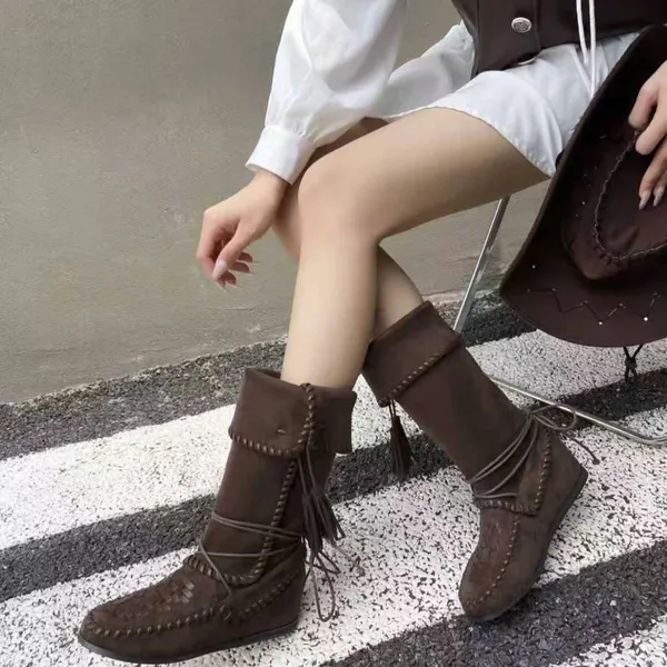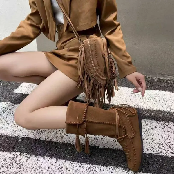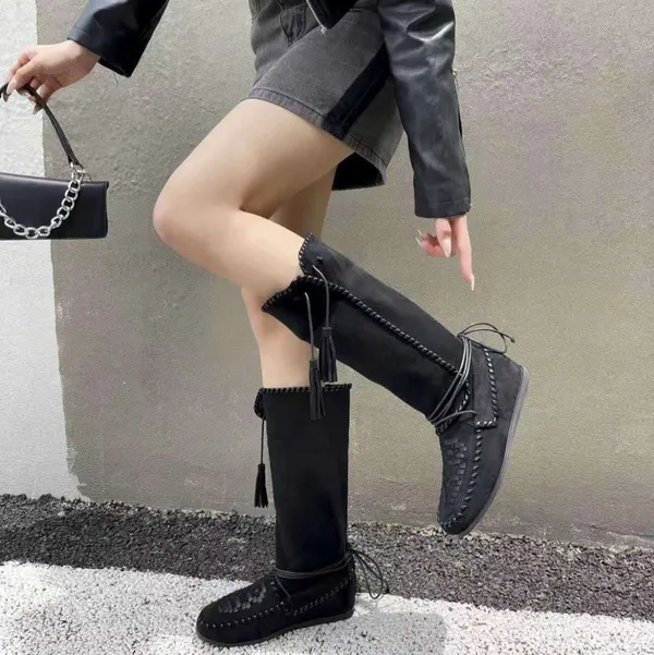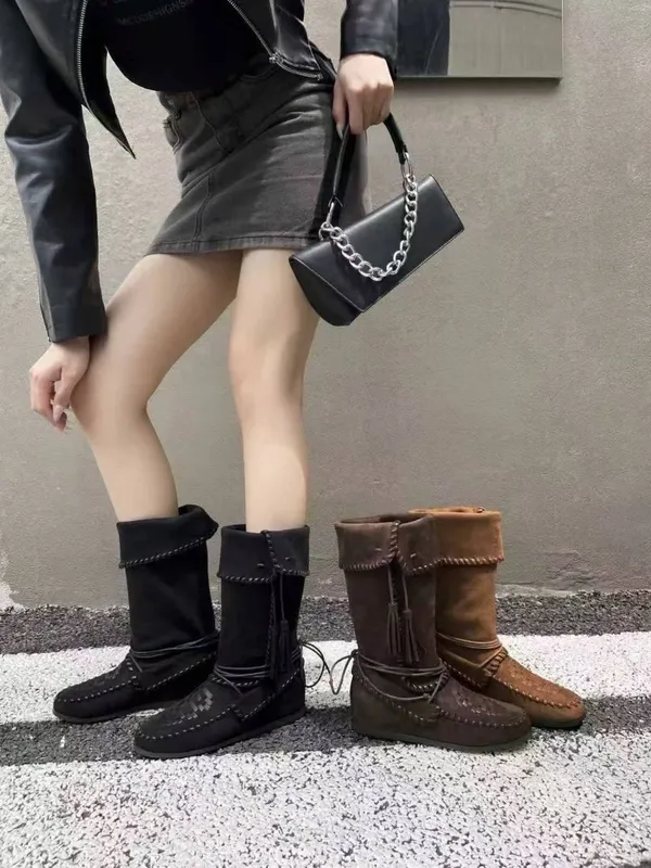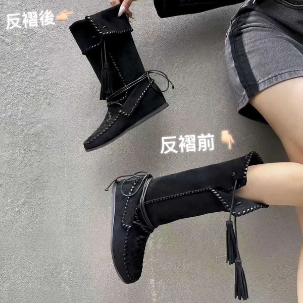 真皮流蘇靴(可以反褶靴筒高度喔)
