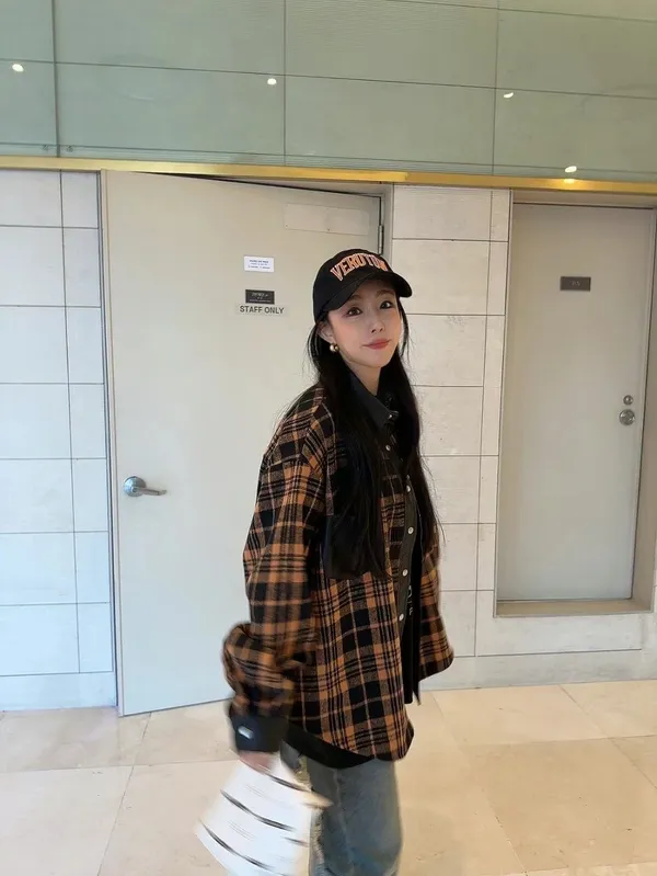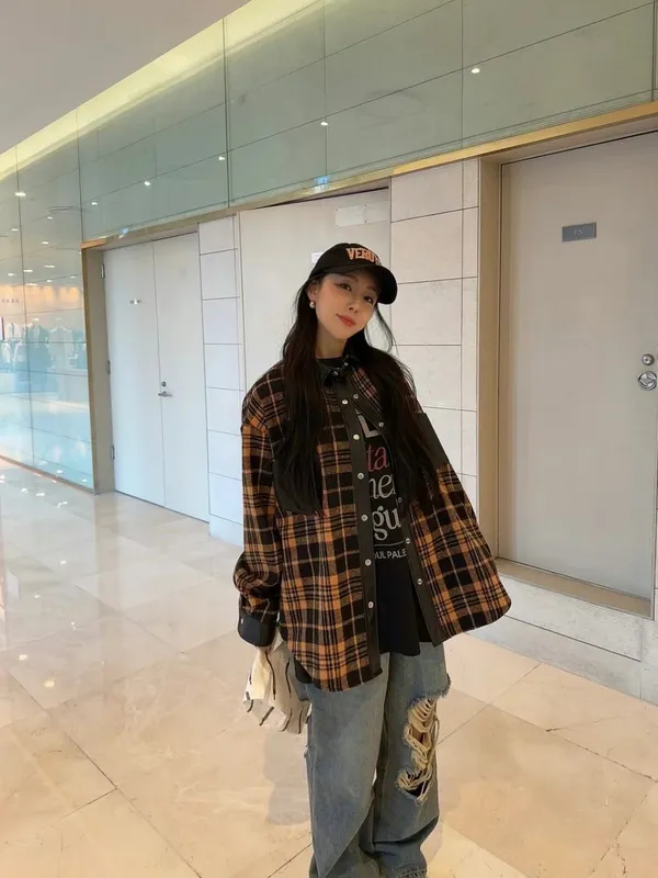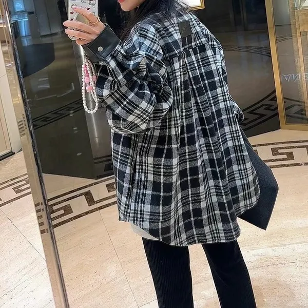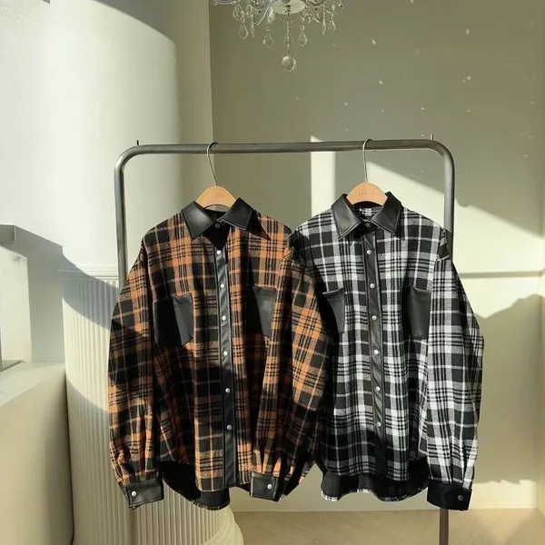 太妍款皮革拼接格紋外套