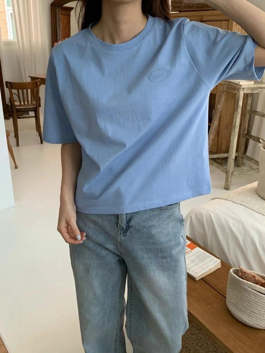 愛心微笑love刺繡單色tee