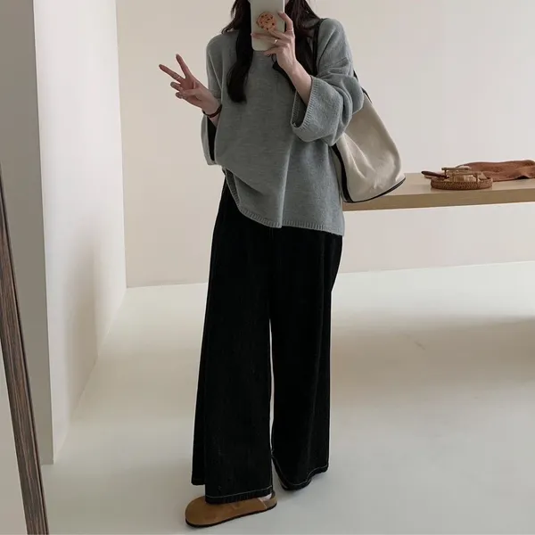 單色寬袖毛衣