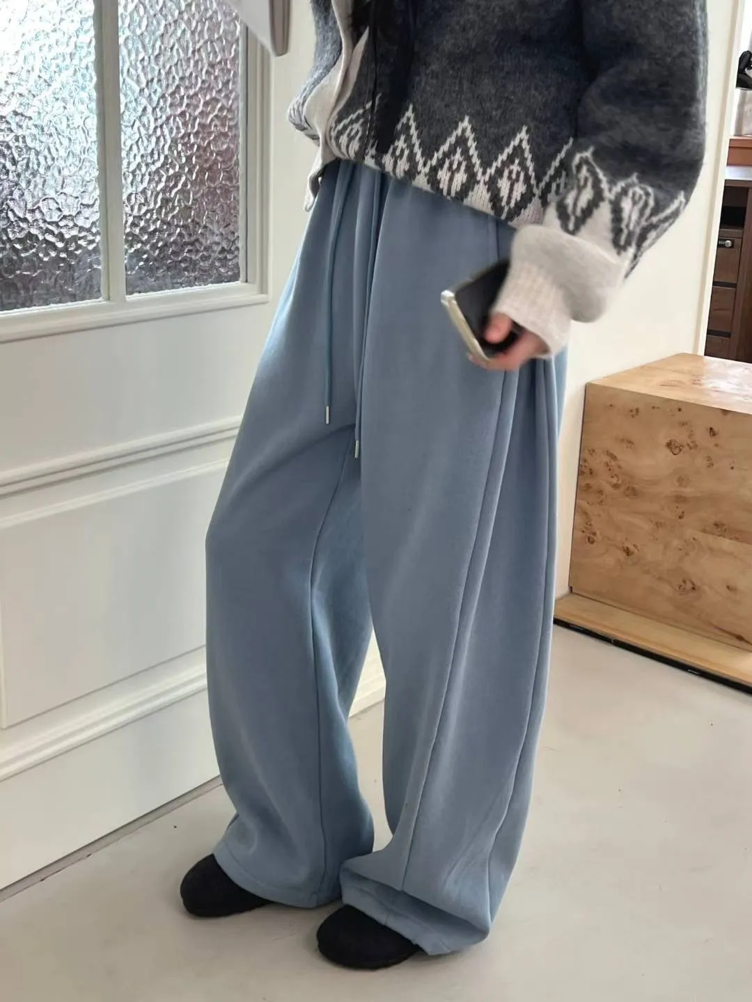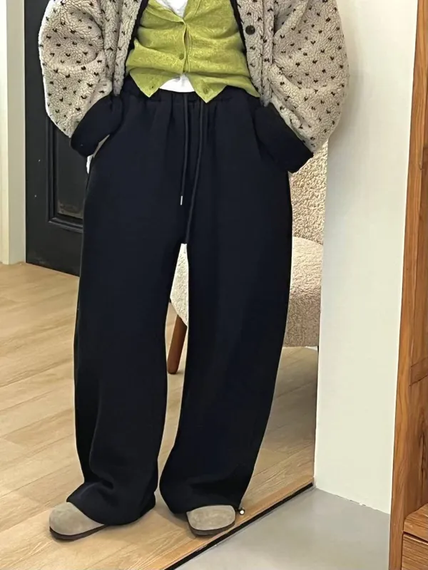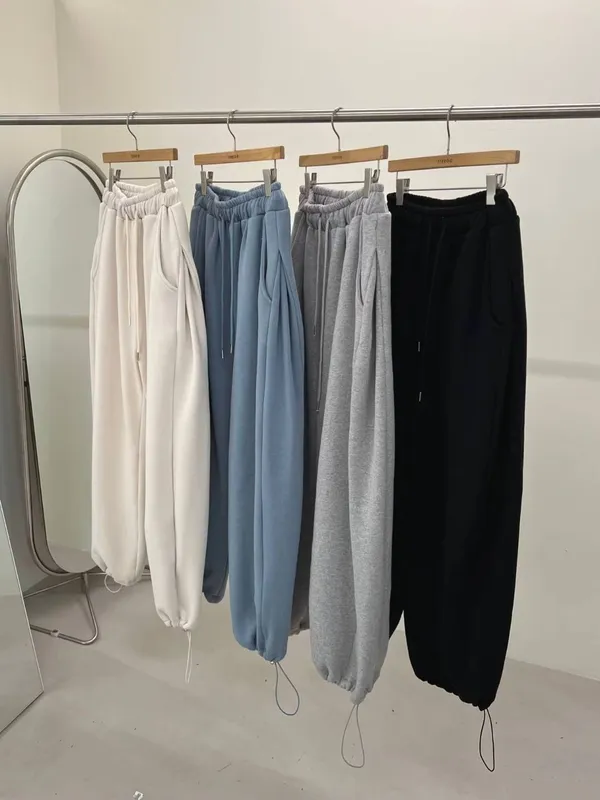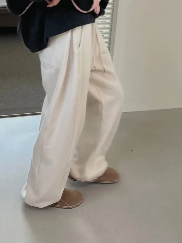 厚磅側邊壓褶寬褲/刷毛
