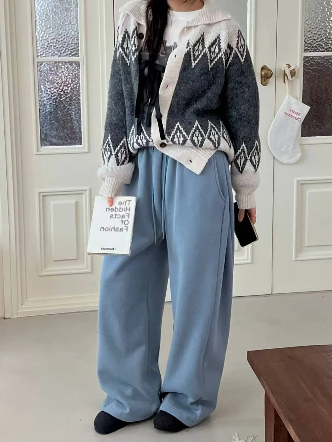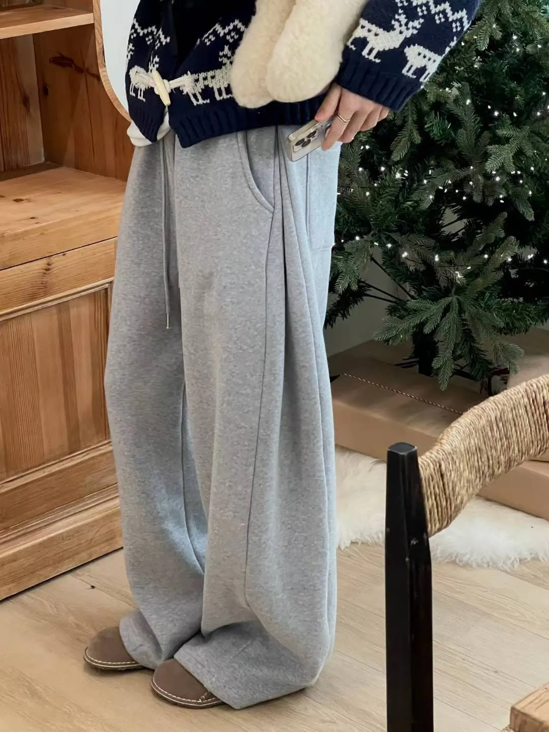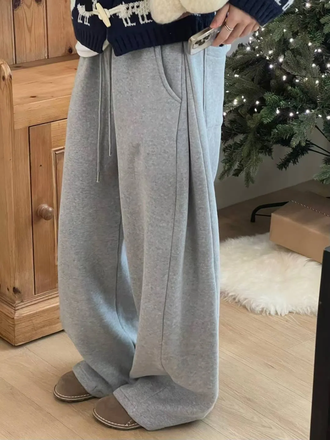 厚磅側邊壓褶寬褲/刷毛