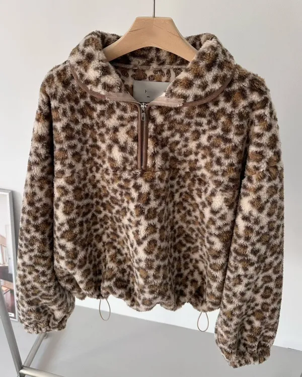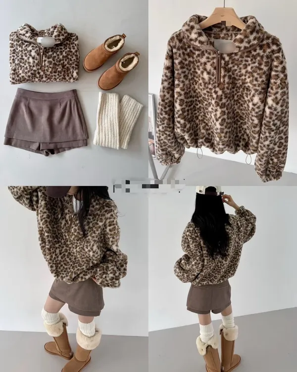 豹紋拉鏈上衣