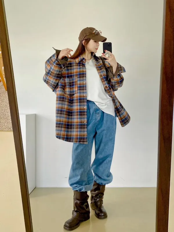 薄鋪棉格紋外套