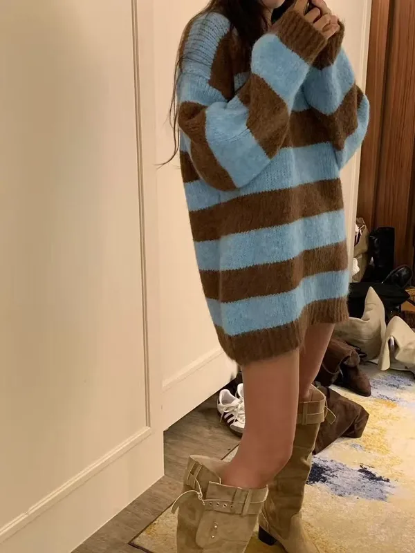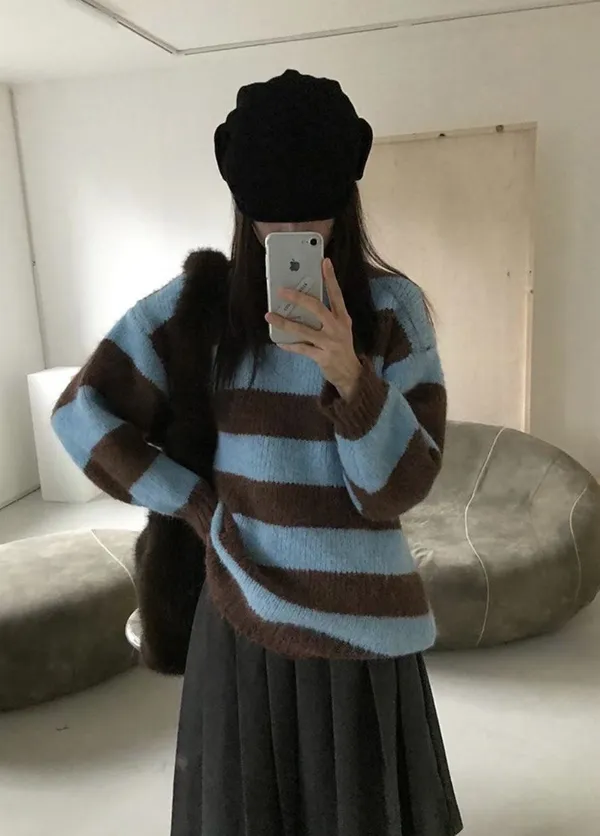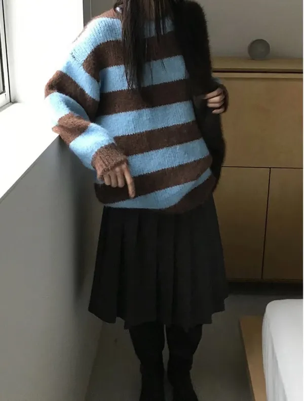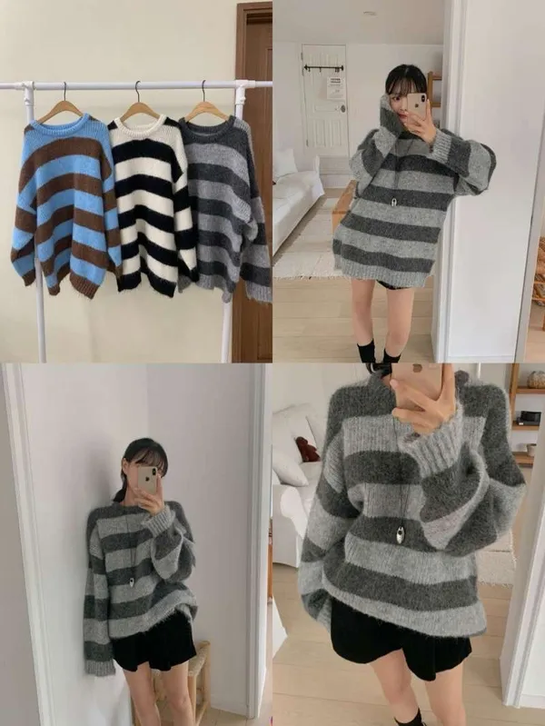 條紋長版毛衣/韓國連線價