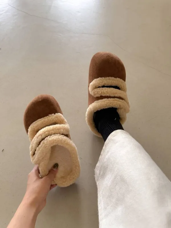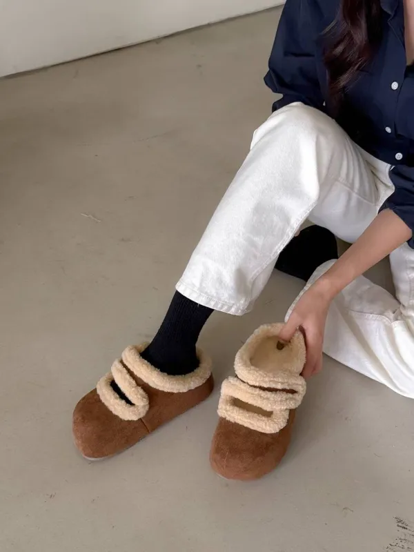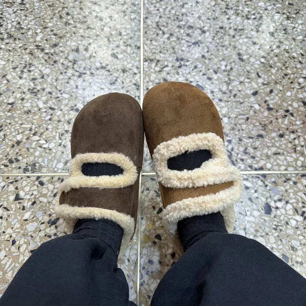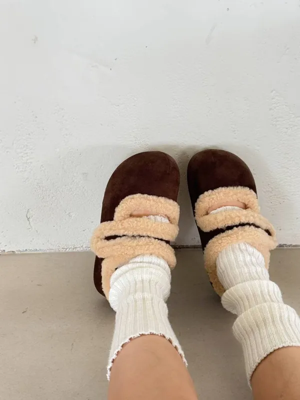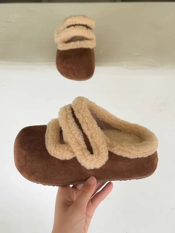 大頭羊羔毛厚底半拖鞋/ 正常版