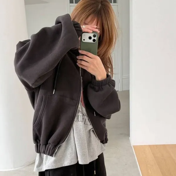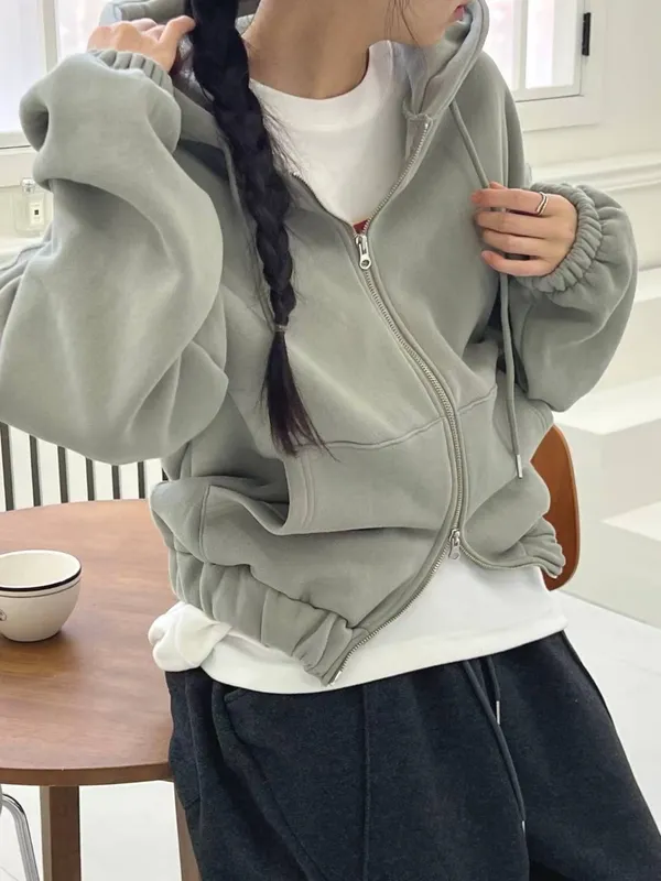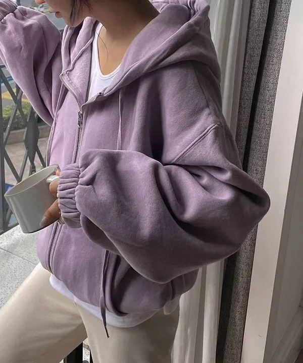 厚磅刷毛連帽外套/上下拉鏈